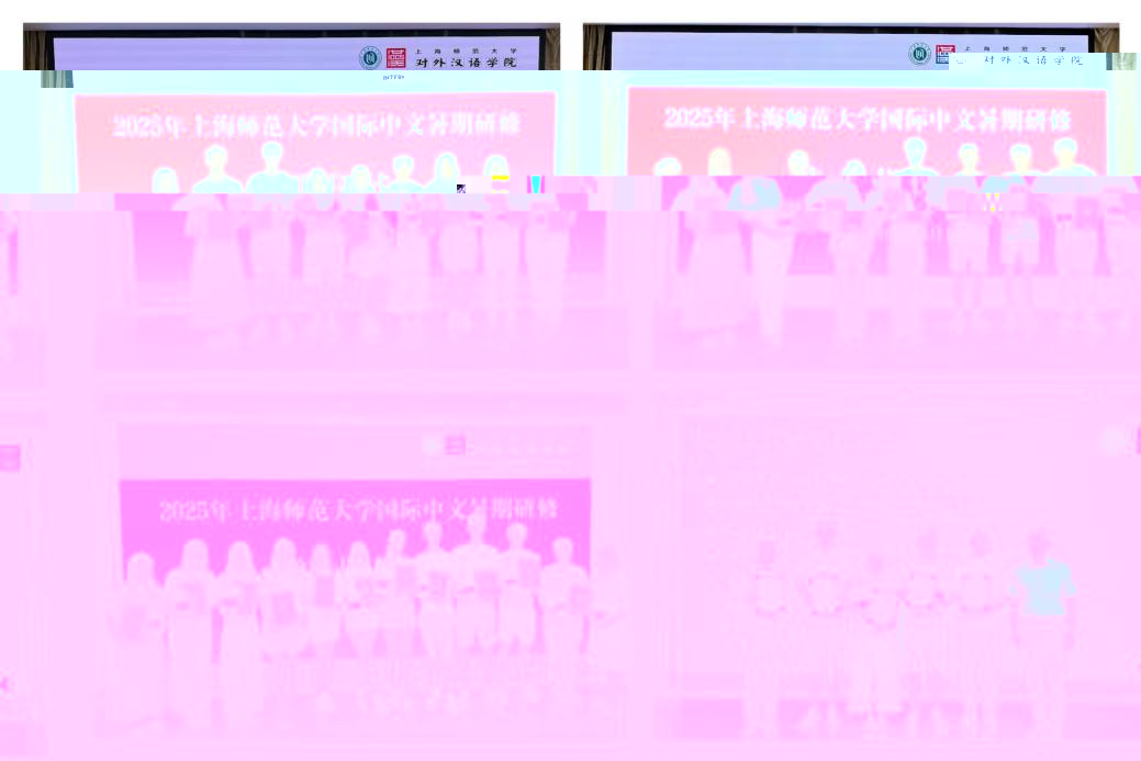 8月1日上午,2025年來華留學生國際中文暑期研修項目(7月)結業儀式在303多功能廳舉行。對外漢語學院副院長張巍老師,國際事務辦公室韓陽老師、劉陽老師,授課教師、班主任參加儀式。結業儀式上通過視頻回顧了四周研修的精彩瞬間。張巍老師在結業緻辭中向本次活動的圓滿舉辦表示祝賀,暑期項目的結業既是終點,更是起點,他寄語學員們将在中國的所見、所聞帶回自己的國家,将所學、所感實踐于未來的學習之中,并歡迎各位學員有機會再次來到上海、來到上海師範大學學習與深造!